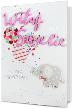 Kartka jest bogato i różnorodnie zdobiona (zależnie od wzoru: metaliczna folia, lakier perłowy,