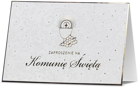 Zestaw 5 szt zaproszeń.Zaproszenie jest bogato i różnorodnie zdobione (zależnie od wzoru: metaliczna folia, lakier perłowy lub brokat).
