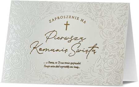 Zestaw 5 szt zaproszeń.Zaproszenie jest bogato i różnorodnie zdobione (zależnie od wzoru: metaliczna folia, lakier perłowy lub brokat).